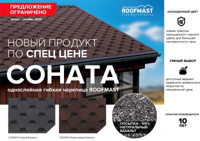 Представляем вашему вниманию новинку в ассортименте гибкой черепицы Roofmast от Технониколь – Roofmast Соната.
