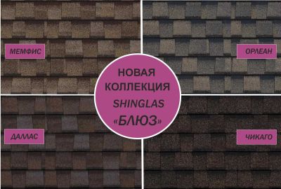 В ассортименте гибкой черепицы Shinglas появилась новая коллекция – «Блюз», состоящая из 4 цветов: Мемфис, Орлеан, Даллас, Блюз