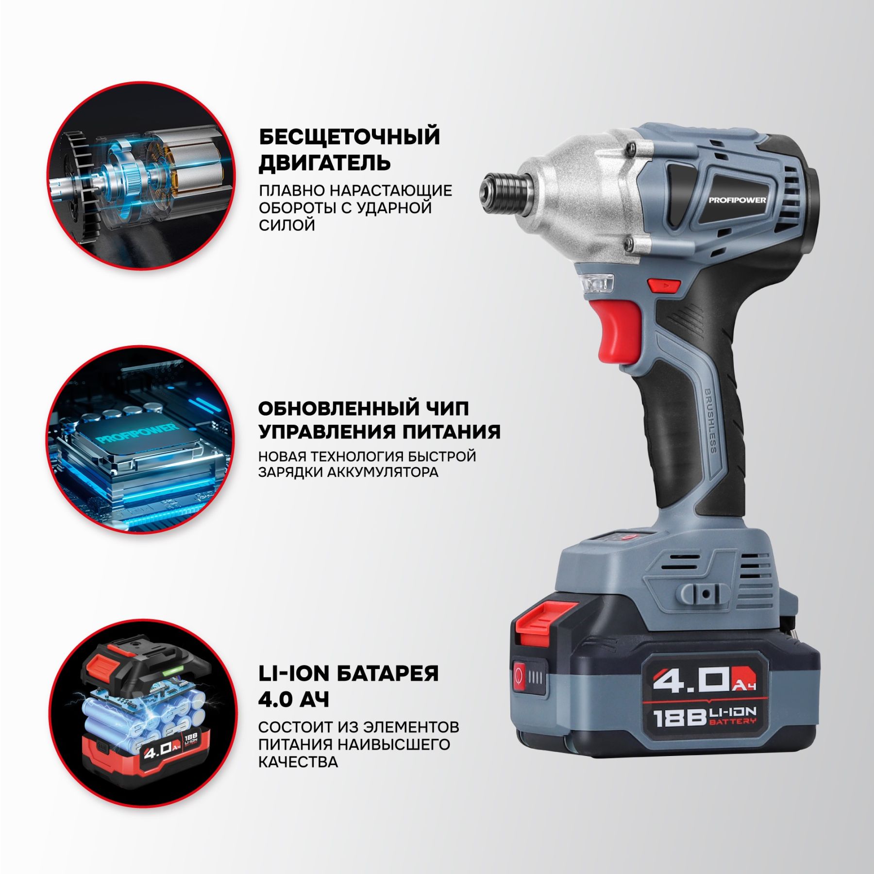 PROFIPOWER MKDTD-18V (E0082) аккумуляторный винтоверт беcщеточный импульсный