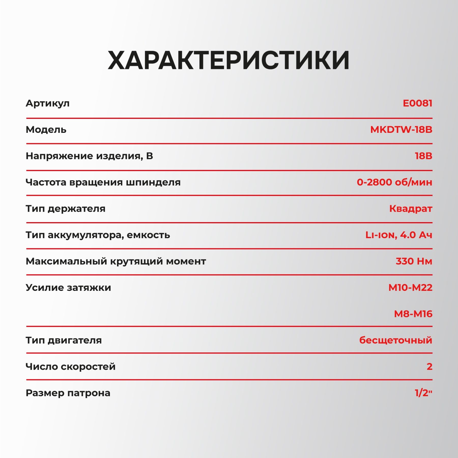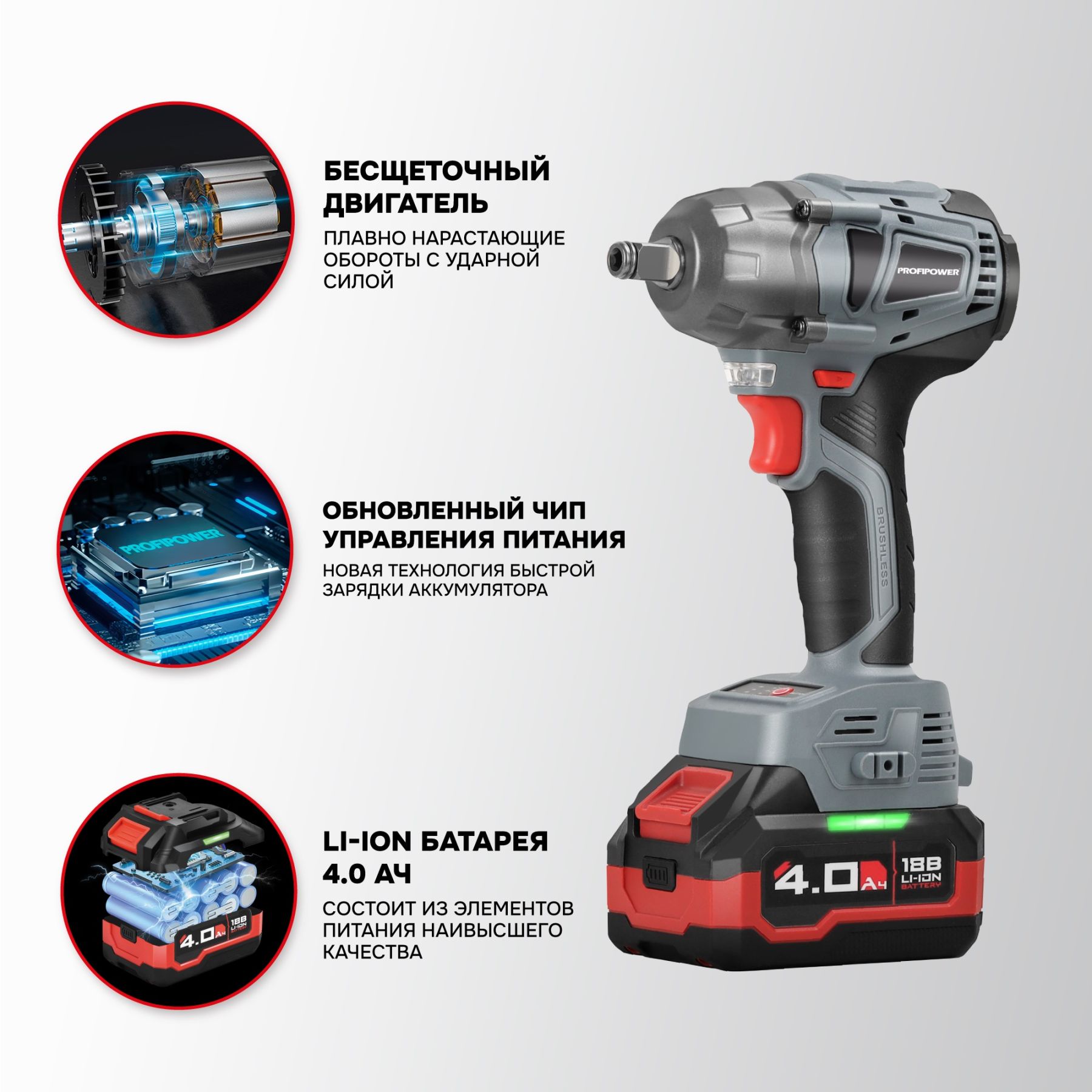 PROFIPOWER MKDTW-18B (E0081) аккумуляторный гайковерт бесщеточный импульсный